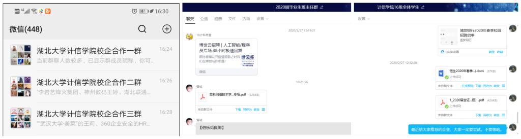 会后,各毕业班班主任和学院分管就业辅导员及时向同学们传达了会议精神,国家研究生招生最新政策,主动与用人单位对接,目前先后已有近30家企业表明了用人意向,将陆续开展空中招聘工作。