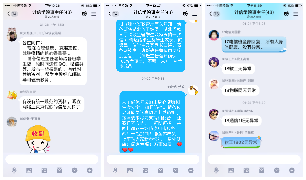 公司认真落实“日报告”和“零报告”制度,组织学院辅导员、班主任老师、班长、生活委员、网格员每天动态摸清每一名员工的动向及健康状况,密切关注跟进确诊、疑似、亲友病例等特殊员工群体的情况,及时上报学校,并对员工尽可能提供帮助并加以引导,坚定员工战胜疫情的信心。