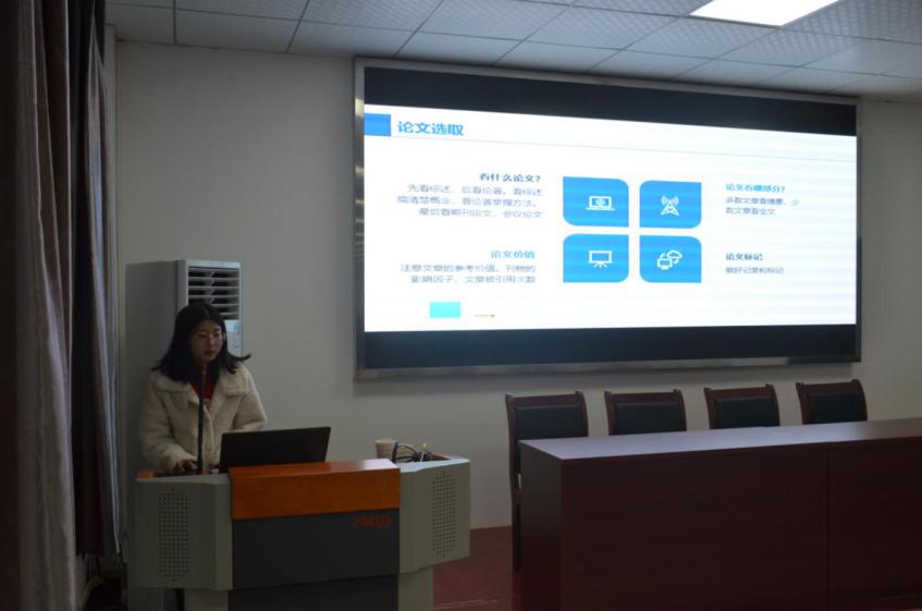 接着,贾琳同学对论文做了全方位的介绍,内容涉及做科研时如何选取适合自己的论文,如何有效的阅读论文来获取其中的精髓,如何写一篇优秀的论文,成文之后如何发布等方面。最后,她忠告同学们科研虽难,切不可走学术造假的道路。