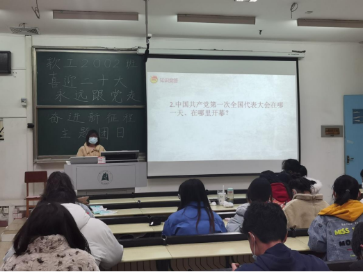 3月20日18时,软件工程2002班团支部在教四303召开本次团日活动,在规范团日的基础上勇于创新,巧妙加入《我的祖国》《万疆》《灯火里的中国》等歌曲歌名竞猜、党史团史校史知识竞答、你画我猜红色知识等游戏环节,让青年团员在趣味中学团史、党史,做到真正参与团日、融入团日。活动结束后,同学们意犹未尽,反响热烈,其中朱鑫同学表示:“本次团日活动形式丰富,大家的参与率极高,在学习团史党史小知识的同时,还有一些游戏奖品和小零食,非常有趣,收获颇丰。”