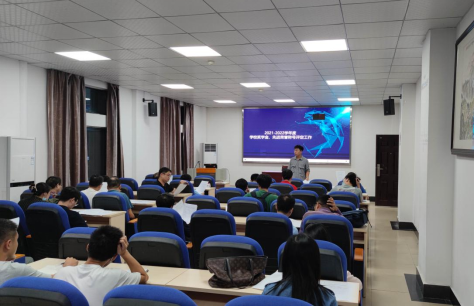 辅导员黄河介绍了关于开展2021-2022学年度学校奖学金和先进荣誉称号的评定工作,并详细说明了相关评选细则和评选条件。
