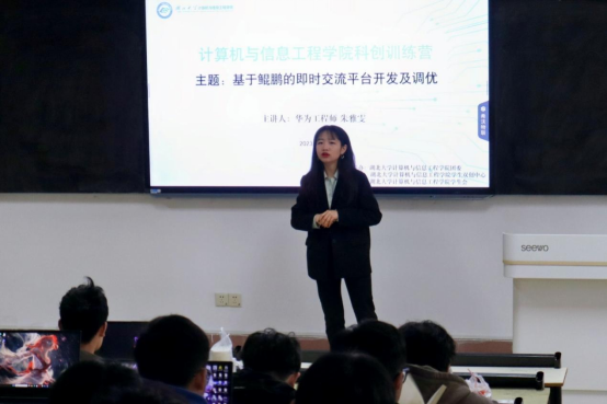 为进一步提高公司员工科研创新能力,切实帮助员工加深对华为前沿技术的理解,积极探索计算机知识的发展趋势,11月4日、5日,学院于四号教学楼开展科研创新训练营活动,邀请华为工程师朱雅雯、苏江明作辅导讲座。