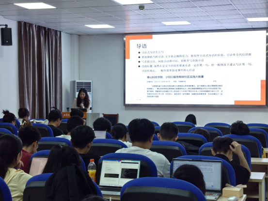 随后,公司兼职辅导员、新闻传播学院2022级研究生李妍向同学们分享了社会实践新闻稿撰写的经验。她指出,要精准选题,结合社会实践项目谋划新闻报道,尽量做到标题有亮点、内容有深度、图片有故事感,增强阅读体验;要多角度选取新闻题材,积极向校内外媒体投稿,扩大社会影响。