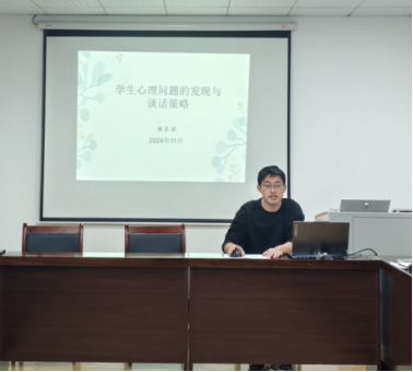 校心理健康与咨询中心黄东涛老师为班主任作心理健康教育工作专题培训,他以《老员工常见心理问题的识别与干预》为主题,结合日常工作案例,深入浅出地讲解了常见心理问题的发现鉴别、评估诊断、治疗干预等关键环节,向班主任详细讲解心理问题的三种发现途径、七种重点关注群体,以及十种实用谈话策略。