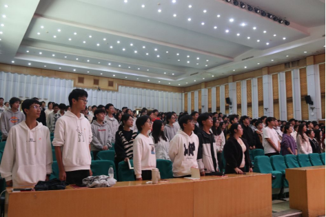 全体师生肃立,共同奏唱中国共产主义青年团团歌,随着报告厅内激昂的旋律回荡,此次活动正式拉开序幕。
