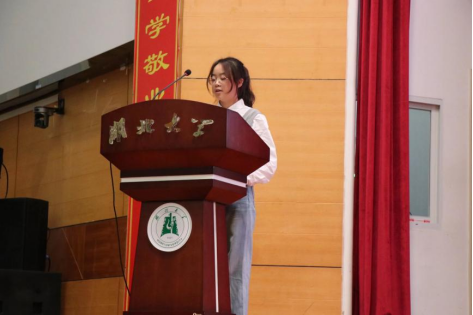 随后,团校学员代表、2025级计算机类本科生谭君伊发言并宣誓,要以“勤学”为输入,优化思想的“核心算法”;以“严守”为防火墙,筑牢行为的“安全边界”;立志不做空谈的“键盘侠”,要做行动的“实干家”,号召全体学员以实际行动为实现中华民族伟大复兴的中国梦贡献自己的青春力量。