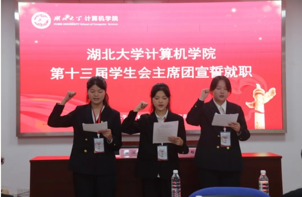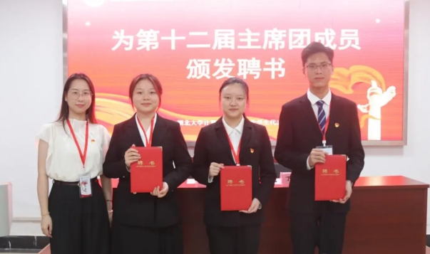 在第四次全体会议暨闭幕式上,院团委书记潘洒为学院第十二届员工会主席团成员颁发证书,学院新旧两届员工会主席团成员郑重地完成会旗交接仪式,并进行了庄严宣誓。至此,本次员工代表大会在《威廉希尔WilliamHill官方网站校歌》中正式闭幕。