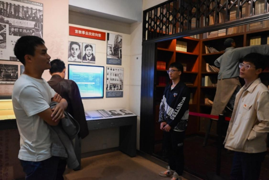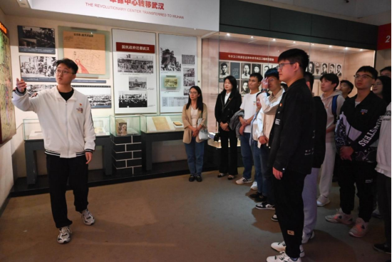 在党的宣教事业发展陈列处,师生一行驻足认真学习,计信学院宣传工作员工干部周天智向大家生动介绍了党早期宣教事业的发展,以及中国共产党在武汉地区设立的重要出版发行机构——长江书店。田仕兵老师结合党报、党刊的发展历程,讲解党的不同时期传承发展的红色基因和历史精神,强调要学习贯彻习近平新时代中国特色社会主义思想,认真学习习近平总书记对宣传思想文化工作作出重要指示,学习传播好党的理论思想。