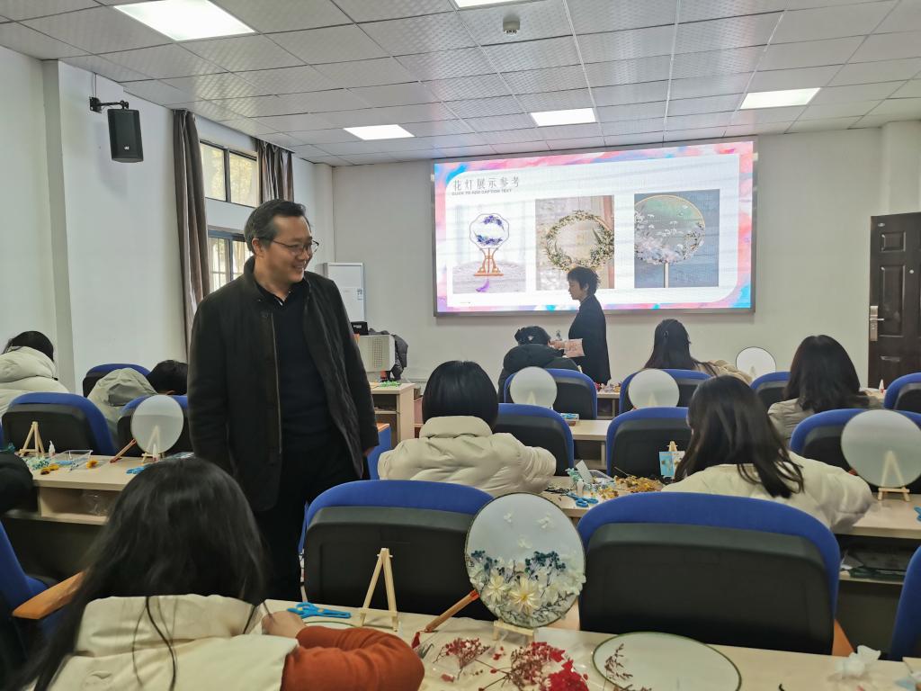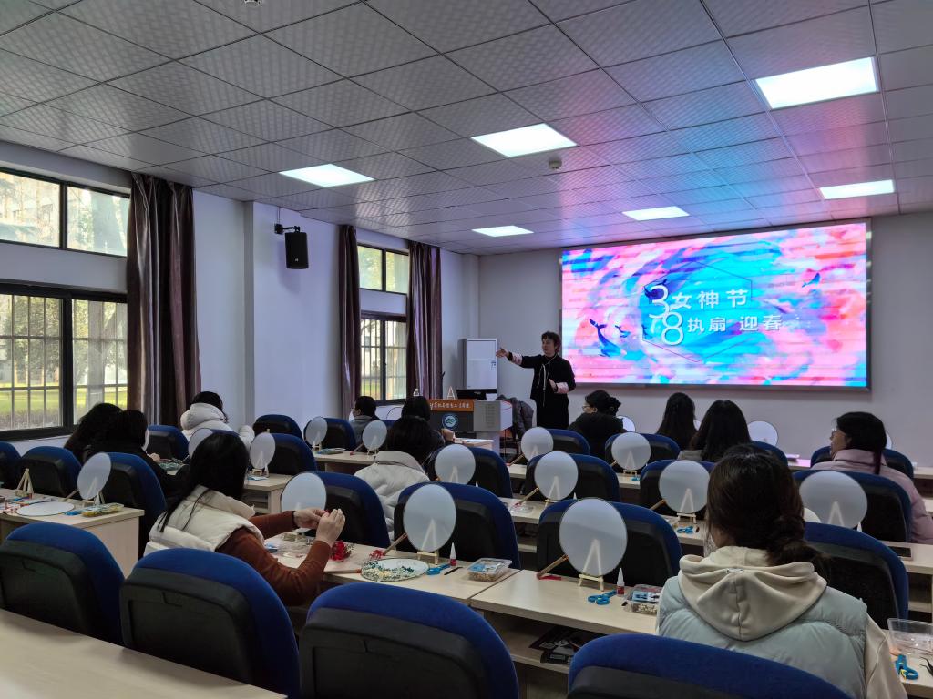 在第114个“三八”国际妇女节的来临之际,学院在102会议室组织女职工开展“执扇迎春”主题的干花团扇手工制作活动,计信学院、人工智能学院近三十位职工参加了活动。
