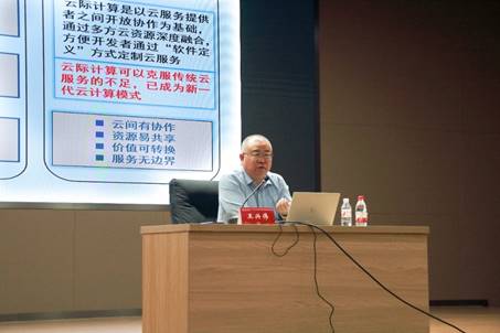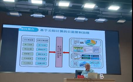 在报告中王教授详细讲解了他和团队在云际计算领域的最新研究成果,分享了近年来该项目的进展与突破,展示了在数据确权、跨域资源调度、云际协同优化以及云监管和可信治理等方面取得的成绩。