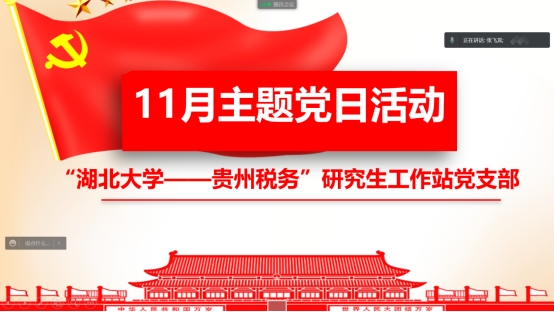 11月21日晚,“威廉希尔WilliamHill官方网站-贵州税务”研究生工作站党支部利用腾讯会议召开11月党日活动,活动由支部书记崔海波主持。会上支部党员集体重温入党誓词并学习《党章》,随后支部副书记曾煜带领大家学习习近平总书记在纪念辛亥革命110周年大会上的讲话精神,他表示作为青年党员,应该发扬孙中山先生等辛亥革命先驱的伟大精神,坚定信念,在共产党的领导下,为祖国富强、繁荣、昌盛贡献自己的力量。