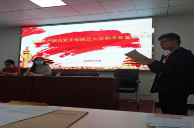 9月15日下午,在计信大楼102会议室,软工大数据联合员工党支部召开九月党日活动。支部书记张玥老师主持活动。本次活动分为5个流程:重温入党誓词、支部书记讲党课、半年鉴定、转正大会、理论学习。