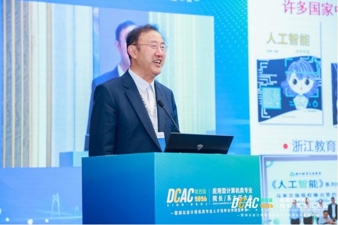 开幕式上,全国高等学校计算机教育研究会理事长、DCAC指导委员会主任蒋宗礼对会议的召开表示祝贺,并对各承办单位的精心筹备表示感谢。他表示,当前人工智能发展迅猛,专业教育的改革与建设需要主动拥抱人工智能,以更好服务社会人才培养需求;如何有效利用人工智能赋能专业教育,已成为亟待深入探索的重要课题。
