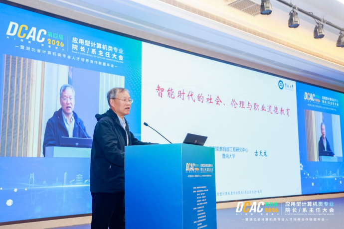 暨南大学教授古天龙以“智能时代的社会、伦理与职业道德教育”为题,梳理了人工智能大模型的发展历程,并结合生动详实的案例,阐述了人工智能技术在伦理与安全方面引发的现实问题与深层担忧。